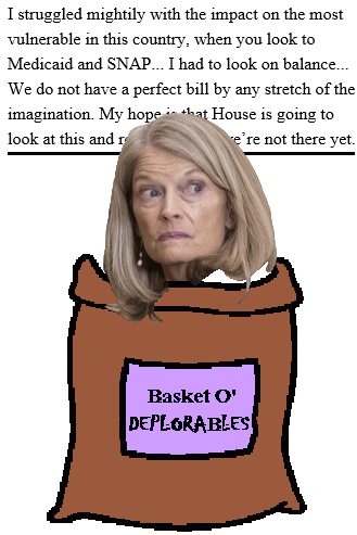When Murkowski says she had to look at the balance of interests, what was she referring to? Whether the short-term carve outs in the bill...bill...bill targeted to benefit Alaska were worth the long term suffering of everybody else in the country. The very public answer she gave amounted to: "Y'all on yer own, now."