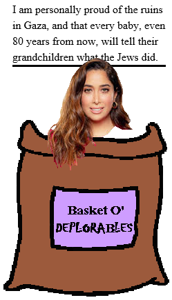 Israelis express their enthusiasm for Gazan genocide all of the time, often in terms much more hideous than Ms. Golan. Unfortunately, when they do, European and North American Zionists hear: "I am personally proud of every baby in Gaza. 80 years from now, they will tell their grandchildren what great things the Jews did for them."