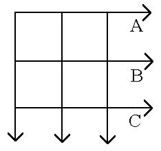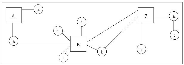 There need be no contradiction here; both methods can have their uses. Which approach a writer takes will be determined by, and subsequently determine, the shape the writer initially believes the narrative will take. Broadly speaking, we can refer to two categories of hypertext narrative structure: rigid and fluid. Rigid structures are highly schematic, with little flexibility in the placement and linkage of nodes (corresponding to the beginning of the interactivity continuum explained above). Parallel structure is a common form of a rigid structure. In a parallel structure (Figure 2.2), two or more lines of narrative run alongside each other, allowing the reader to move between them. In Figure 2.2, line A could be a series of events told from one character's point of view, line B could be the same events told from a different character's point of view and line C could be the events told from a third point of view, a commentary on the first two views or some other, related series of nodes. Another possible use of the parallel structure: line A could be the events in an adult's life; line B could be related events from the character's childhood; line C could be social events which have an impact on the character in either (or both) time periods. The possible uses to which parallel narrative structures can be put have, to this point, barely been explored. For our immediate purposes, though, it should be noted that writers who work with structures which fall into the rigid category are much more likely to begin with structure and then create the content for each necessary node.