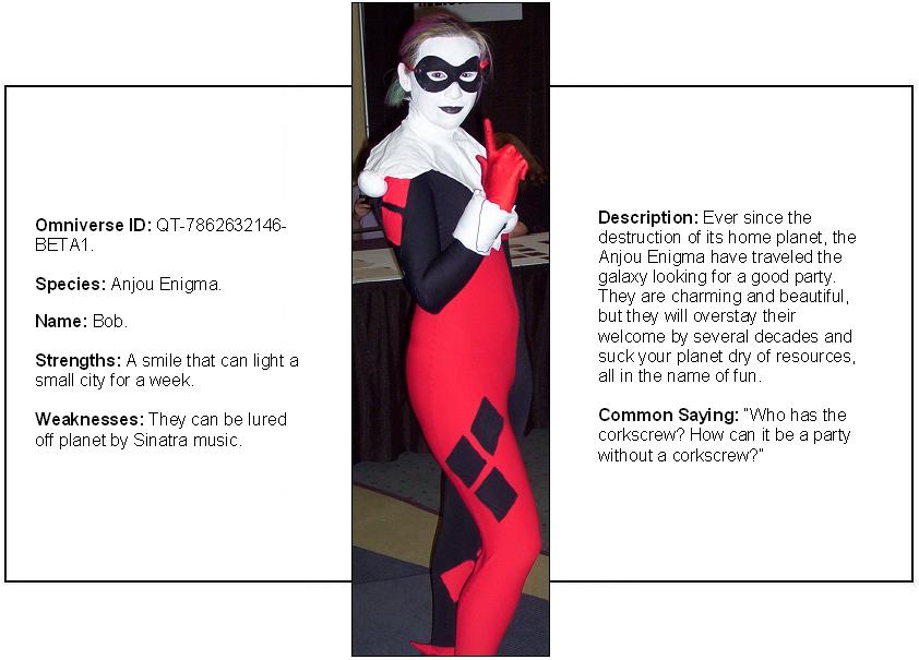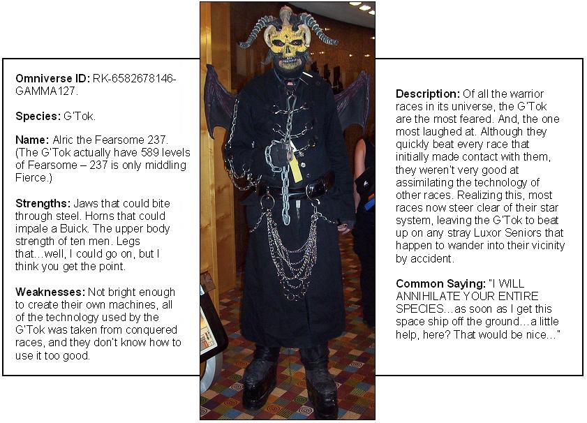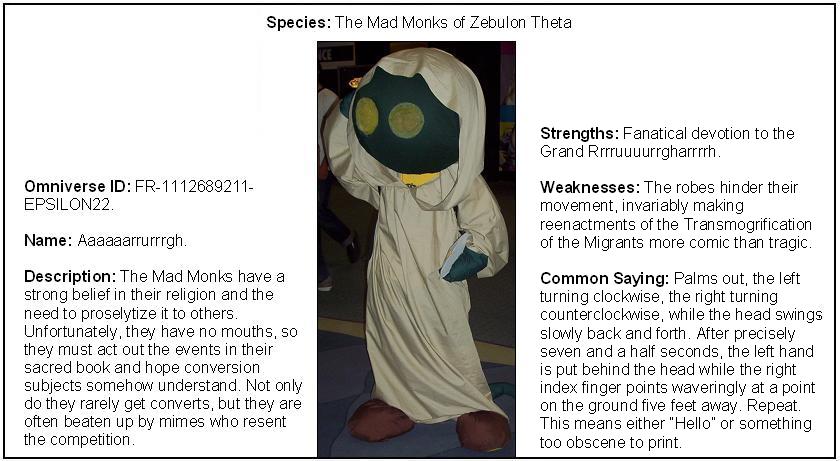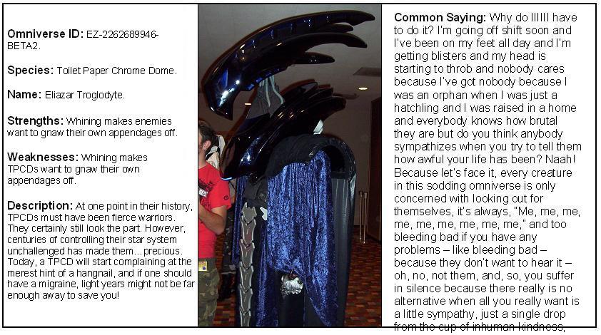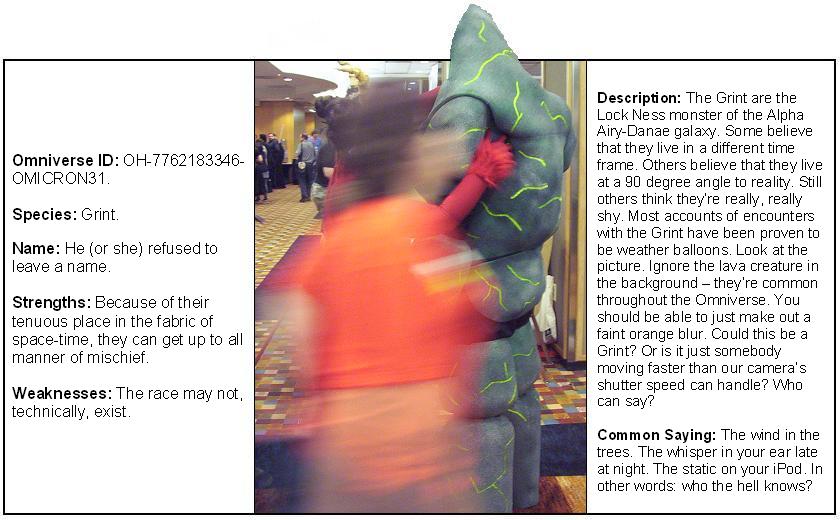 As part of their jobs, ARNS reporters are supposed to file detailed reports of all of the alien species they come across. These are kept in quantum computers built into the substrate of the omniverse (ARNS tech support rules!). Ordinarily, these files are not available to the public. However, in a bid to humanize our service after the Alpha Omega Interregnum Debacle, the Omicron Ceti Unpleasantness and the incredibly unfortunate Beta Oxbow Incident – as well as to stave off threatened government oversight – we have decided to make some of our files public.