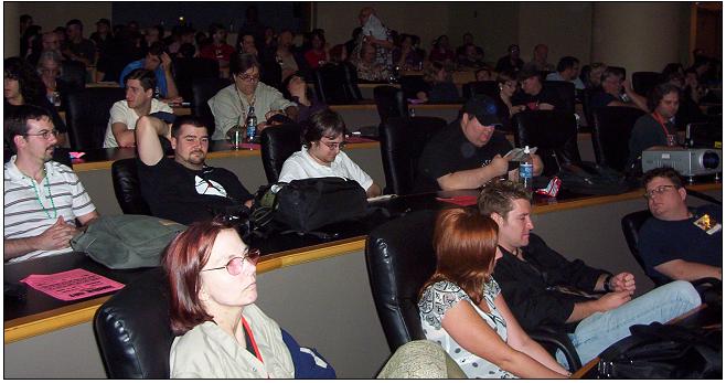When I first got to the convention/film festival, I went to pick up my ID tag, only it wasn’t in the folder for the Ns, so I had to go to the (and I wish I was making this up, but I’m not) Trouble line. After a few minutes in the Trouble li – okay, to be honest, I’m actually kind of proud of being in put there – eventually, I got to head of the line, and the woman behind the Trouble counter said there would be no problem printing up a tag for me.