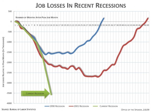 1) According to a chart developed by Speaker of the House Nancy Pelosi's office, three recent recessions in the United States looked like this: