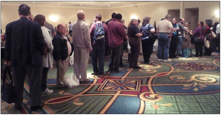 But, hey, it was lineups like this, at the mass signing on Saturday night, that made everything worthwhile. Well, for Connie Willis, the author guest of honour, whom everybody was lined up to see. Still, an (aging) satirical boy genius can dream, can't he?