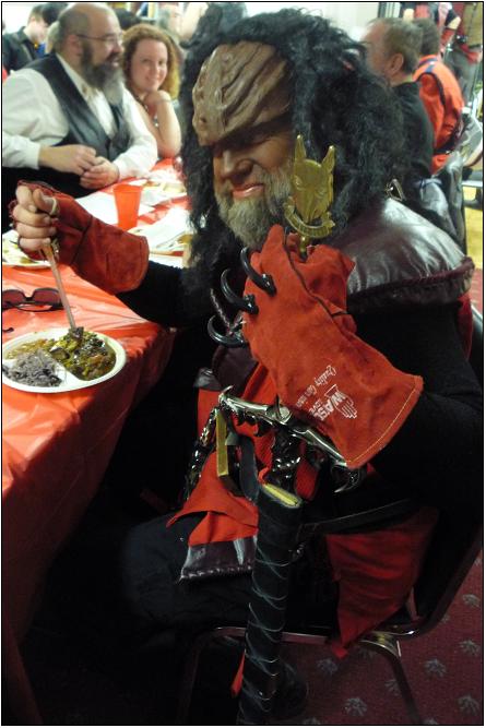 So, I went to the annual feast of the Klingon Assault Group (KAG), a science fiction fan group. They kindly modified the food so that it would be edible by humans (well, most of it, in any case), a touch which I must admit that I appreciated.