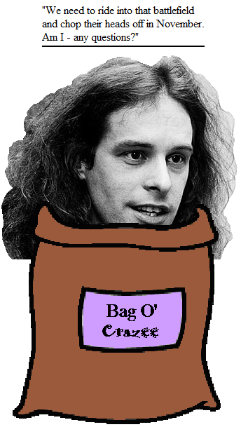 One of the most frequently asked questions at the Big Red Web Page of Unreconstructed Marxism is: "Karl, why hasn't Ted Nugent appeared in the Bag of Crazy?" Oh, Ted has been in the BOC since before Dylan got his first electric kazoo. In fact, Nugent has his own thousand acre estate in the BOC, complete with lawyer-infested moat, hanging gardens (with rose-scented nooses) and field large enough to reenact the most famous tank battles of the Crimean War.