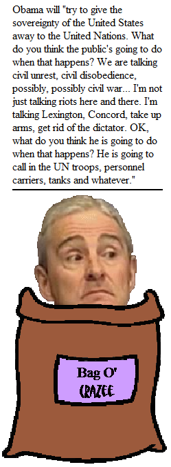 I know what you're thinking: Isn't talk of Liberals facilitating a UN takeover of the United States sooooooo 1980s? Focus, people, focus! You don't get into the Bag of Crazy by being nostalgic for the rhetoric of the Cold War. Well, not entirely. So, now you're thinking: What should I be thinking? Nobody told me there was going to be a test! If I had known that there was going to be a test, I would have worn clean underwear!