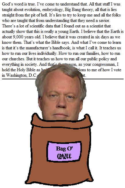 I have to admit that Georgia Republican Representative Paul Broun was something of a conundrum for me. On the one hand, his anti-science beliefs are increasingly common in the Republican Party. If a belief is held by a majority of people in a given population, does it stop being crazy and start being the norm? On the other hand, he sits on the House Science, Space and Technology Committee. Go back and reread the quote with the knowledge that the person who said it sits on the House Science, Space and Technology Committee. The crazy pretty much announces its presence in 72 point type and a megaphone-enhanced voice, doesn't it?