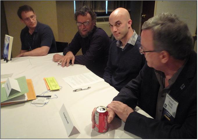 I walked past Author Guest of Honour John Scalzi in the hallway, and I didn't have the urge to walk up to him and say, "You know that book Old Man's War that seems so damn popular? Well, I'm a pacifist, so I have studiously avoided military science fiction. Unfortunately, somebody in my science fiction book club recommended Old Man's War, so I kind of had to read it. And, I hated it. Hated it, hated it, hated it, hated it. Hated it with a passion undying. Hated it on the molecular level. Hated it with a passion so pure it will probably be passed down to 23 generations of my progeny. Hated it, hated it, hated it, hated it. Understand what I'm saying? I just didn't enjoy it very much."