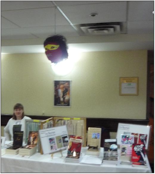Virtually nobody at the con saw the floating head. Those who were tall enough, however, felt it, banging their noggins on it as they approached our table. I suggested that Stephen and Joy, his wife, sell people books while they were stunned. We all laughed. But, by Sunday afternoon, were they looking at the floating head a bit wistfully...?