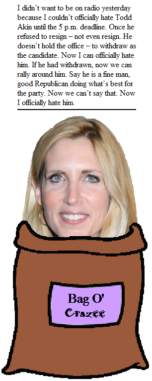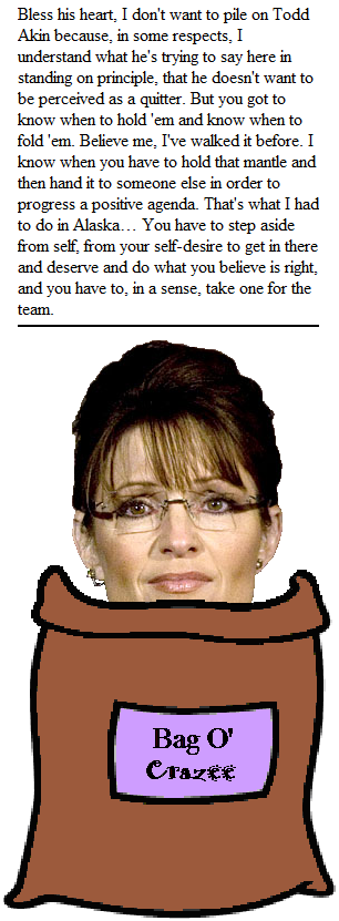 Hmmm... Why are Republicans coming down so hard on Akin when they often hold suspiciously similar positions? I have a theory (if you don't mind my using the terminology of science). You see, there's this magic fabric - let's not call it underwear, let's just suggest that image to you - that divides what Republicans tell their base from what they tell the public. Akin has soiled that...fabric by giving the base message (in every sense of the word) to the general public.
