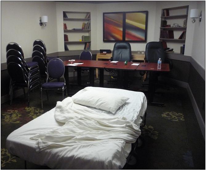 I'm not sure if organizers felt that my reading would put people to sleep, or if they thought my prose would benefit from a cozy atmosphere. As it happened, nobody showed up to this reading, either, so there was no way to test either hypothesis!