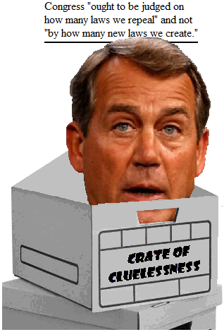 After Mitt Romney proclaimed himself finished with politics after losing the presidency to Barack Obama, I was concerned that the Crate of Cluelessness would have to retire as well. Thank voters for Republican Speaker of the House John Boehner! He is so gormless - I don't think I have ever known a human being that had less gorm!
