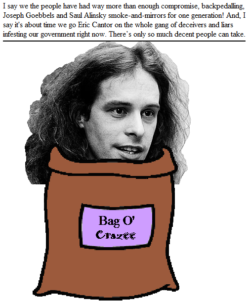 Now, you might think that comparing the only Republican Jewish member of Congress to a Nazi was a little...out there, especially since, you know, Jews control the banking system and stuff. That'll make it harder to get campaign contributions, boy! But, that's the dilemma today's right wing faces, isn't it? The stupid have been indulging the insane for so long that the insane think they own the joint!