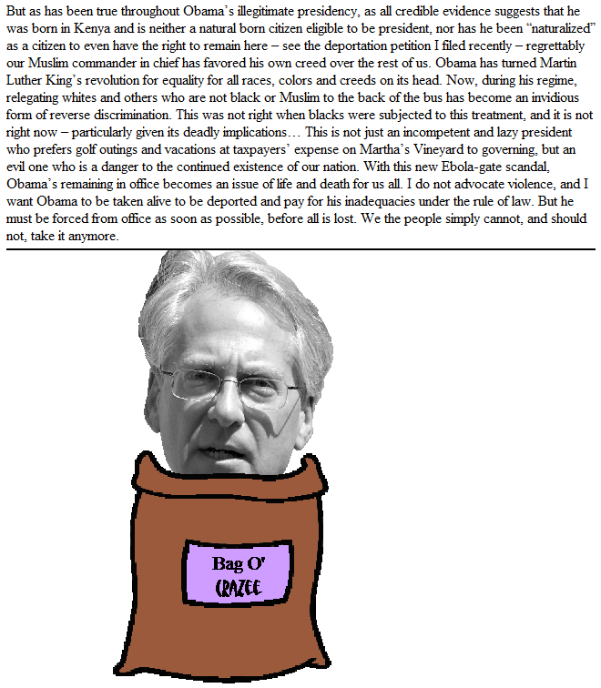 Wow. This column by World Nut News...presumed human Larry Klayman reads like a crazed right wing anti-Obama fanatic's greatest hits (expect the K-Tel album any day now). The only things that are missing are FEMA concentration camps and Benghazi. Sarah Palin must be kicking herself that she didn't write this first!