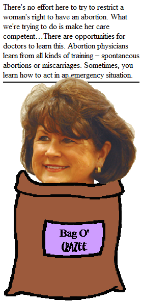 Oh, sure, it would suck to be one of the women an OB/GYN learned from. If your fetus was stillborn and carrying it to term endangered your health, I can see that you would want a doctor who had actually learned how to deal with the situation in order to kind of, you know, save your life and stuff. How selfish some people can be! You should be happy to be in a position to give your life so that some people's perverted idea of Christianity can dominate a supposedly secular country!
