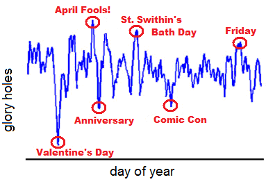 Far Klempt has a name for these kinds of trysts: Glory Holes (the hole is in your schedule, the glory is...mostly in your imagination). They've even aggregated all of the information they collect and charted how many of their users do this over the course of a year: