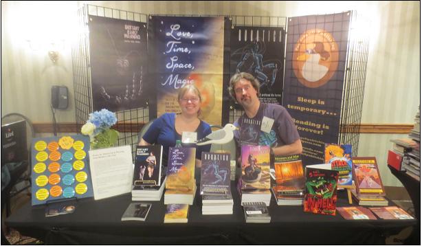 I went to Can*Con in part because I had a story in an anthology called Robotica, which was launched at the convention. In this emoji ancestor, author/publisher Liz Hirst and author Timothy Carter sit at the Pop Seagull table in the dealer's room. Liz is always happy to explain where the name of the publishing company came from, but be warned: you will groan. And, you know how some mothers tell their children: "If you keep giving me those dirty looks, one day your eyes will freeze that way!"? Tim is living proof...