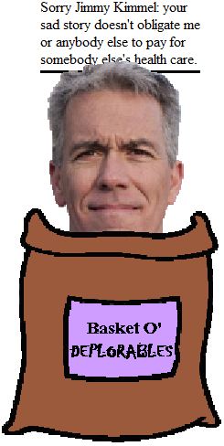 Kimmel, for the contextually challenged among you, talked on his late night show about the difficult birth of his son, and how only severe medical intervention saved his life, and how he could afford it but many parents couldn't (which was why access to affordable health insurance was such an important thing), and how devastating it would be if you had to watch a child die because you didn't have the financial resources to save him, and cried. Only a heartless bastard would fail to be moved by such a heartfelt display.