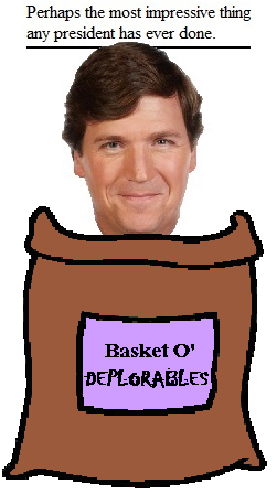 No, against the advice of almost all doctors in the world, President Trump looked directly at the eclipse. The truly deplorable act is, of course, for a prominent national politician to work hard to blind the country's youth, but President Trump already has a resort in the basket of deplorables, complete with an 18 hole golf course, four star chefs and enough massage therapists to soothe even the most inflated ego. Carlson is merely an enabler of deplorables; still, that deserves at least a small summer cottage in the basket.