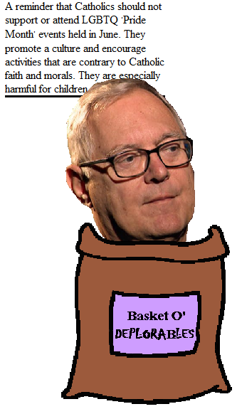 You might have thought that a Catholic Bishop who, by his own admission, had ignored incidents of child sexual abuse when they occurred in his church, would be slow to accuse other groups of being bad for children. To which I would reply: have you ever met the basket of deplorables?