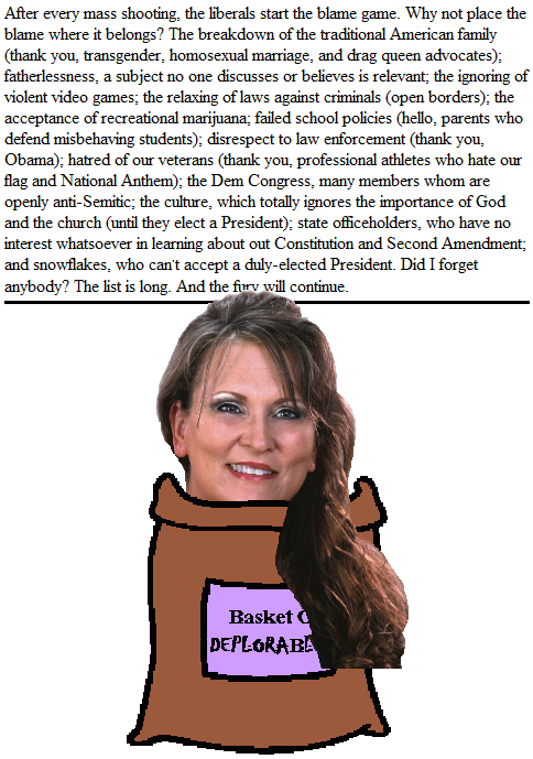 Republican Ohio Representative Candice Keller lives in Middletown, about 30 miles south of Dayton, the other place a gunman killed multiple people early Sunday. But, although her body may reside in Middletown, her soul exists in...the Basket of Deplorables.