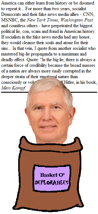 In a single interview, Republican Representative Mo Brooks manages to pull off a reverse Godwin's Law with a double twist: perpetrating a big lie while accusing his opponents of using the big lie themselves. But you know what they say: if you can't argue a case on the merits, argue on the law. If you can't argue on the law, argue on the process. If you can't argue on the process, argue on the basis of the colourful butterflies in your head.