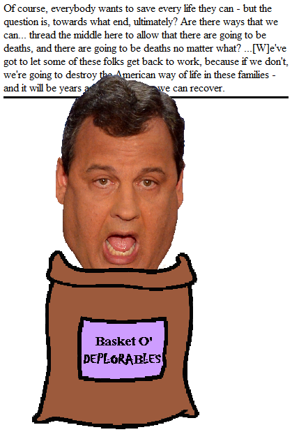 You can be forgiven if you think that Christie was being less than forthright in saying he wanted to save every life he could considering that in the very next breath he said, in essence, "Why bother?" But, what do I know? I don't have his experience threading the middle...