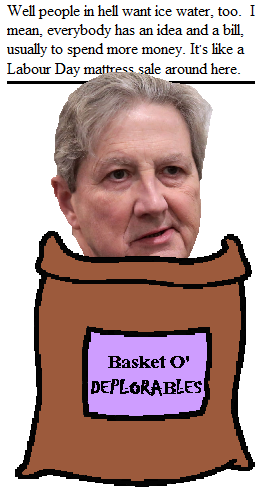 Ahem. As I was saying, Senator John Kennedy had a glorious opportunity to display his Republican when asked about future rounds of stimulus payments to deal with the COVID-19 pandemic. And, boy, did he put his mukluk in his mouth!