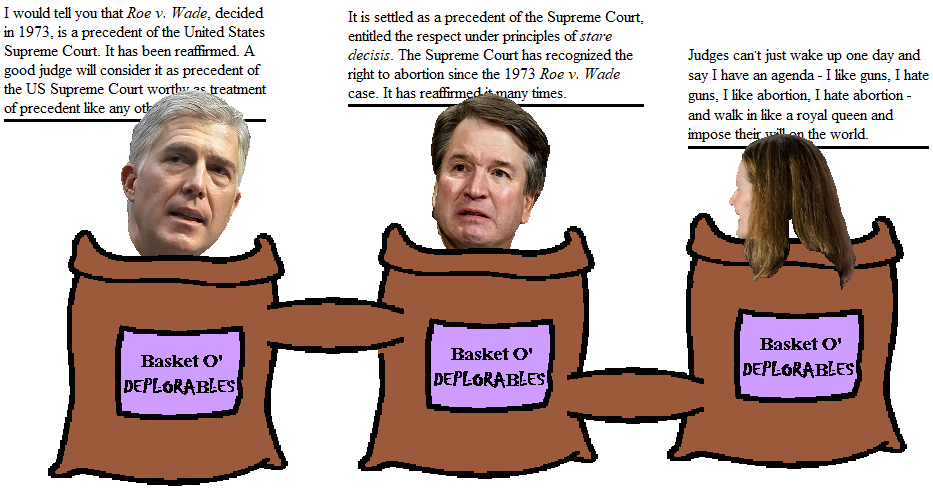 Did the Justices lie at their confirmation hearings? No! No! No! No! No! No! No! No! No! No! Not exactly, no. Well, maybe. It was well known that former President Donald Trump would only nominate Justices who were dedicated to overturning Roe v. Wade, so all their talk of precedent was really unPresidented.