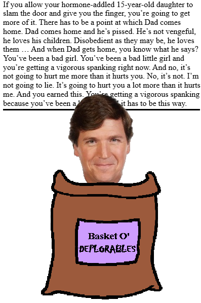 On a scale of one to ten, the ick factor of Carlson's statement is solar systemic. You could almost say systemick. The one saving grace is that none of us actually is one of his daughters, so we don't have to look away, embarrassed, and whine, "Daaaaaad!" (Unless you actually are one of Carlson's three daughters, in which case, you have my condolences...)