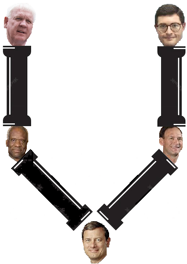 The Supreme Court Justice Pipeline doesn't end with Thomas and Alito. Exactly. The billionaires who fund the pipeline system are...concerned that Chief Justice John Roberts is one of the judges on the Supreme Court who cannot be trusted to make the right(-wing) decisions, being concerned with such trivialities as precedents and rational arguments and the Supreme Court's standing with the publicz. Thomas and Alito's role is to insulate other right-wing justices on the court (Brett Kavanaugh and Amy Comy Barrett, you know who you are) from Robert's evil influence.