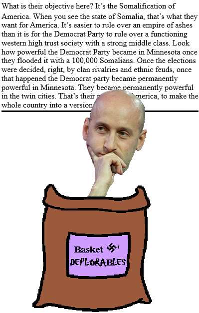 Still. The world is full of people supremacists don’t consider white – would it kill him to give Somalis a break and pick on another group for a while?
